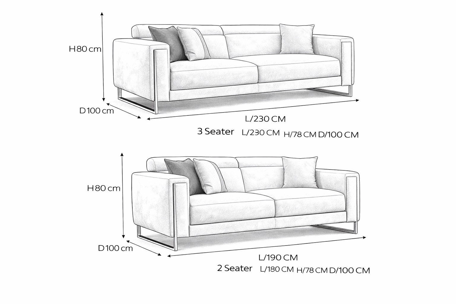 2 Seater (Standard), 3 Seater (Sofa Bed), 3 Seater (Standard)