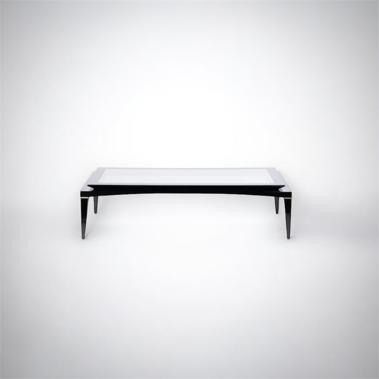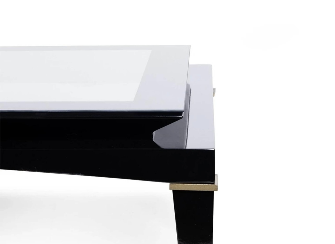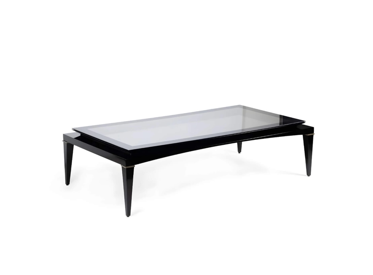 The “Kenza” luxury coffee table exudes elegance with its sleek design. The rich black base, crafted from premium materials, provides a striking contrast to the pristine glass top. Its flawless finish and sophisticated silhouette make it a stunning centrepiece for high-end interiors.