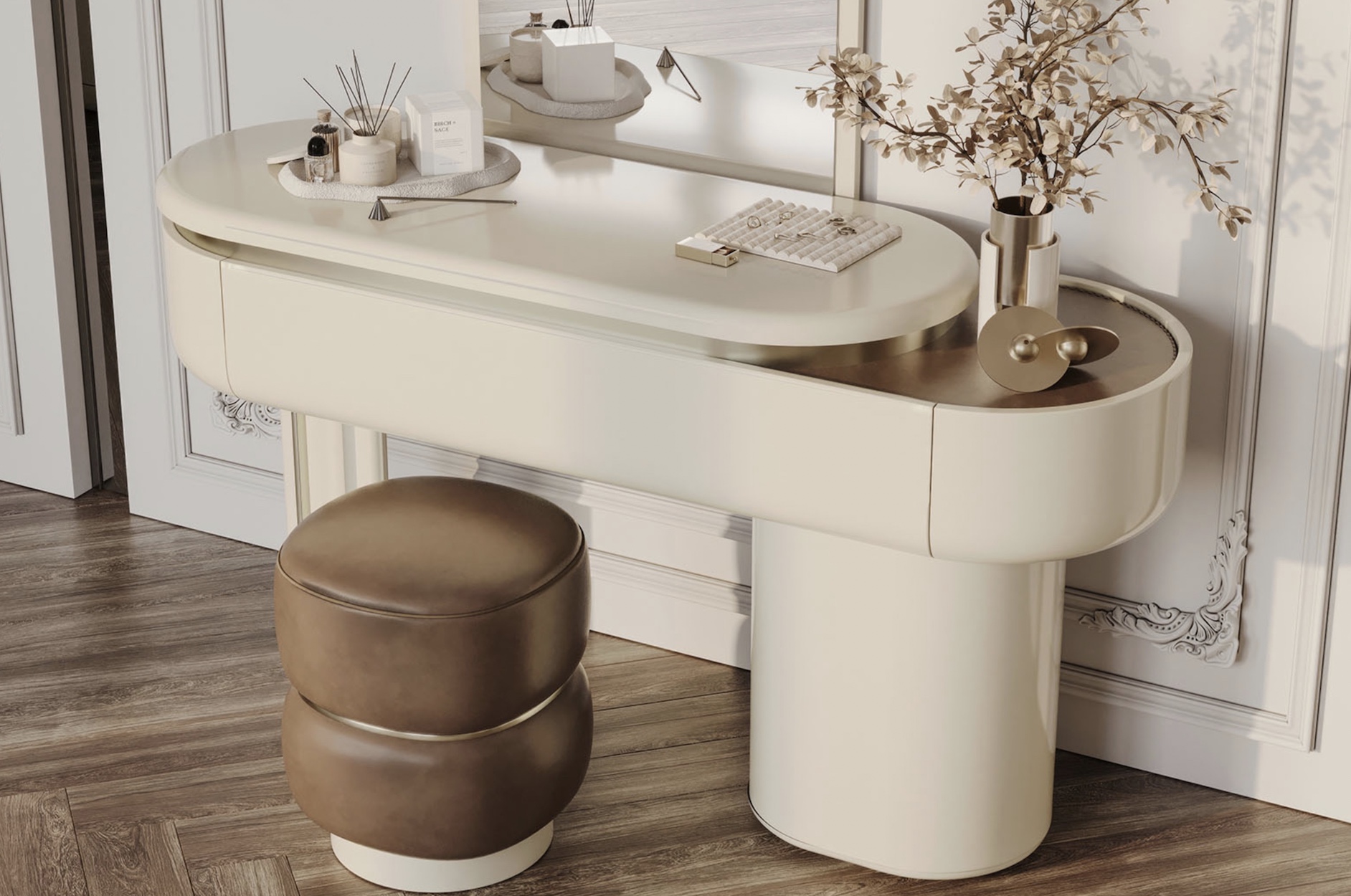 Experience timeless elegance with our “Oakland” luxury bedroom collection, where rich cream and warm brown tones create a soothing, sophisticated retreat. Crafted with exquisite attention to detail, each piece features premium materials, including beautifully grained oak, soft upholstered finishes, and refined metallic accents. This collection blends natural textures with modern design, offering a serene and indulgent space that exudes understated luxury.